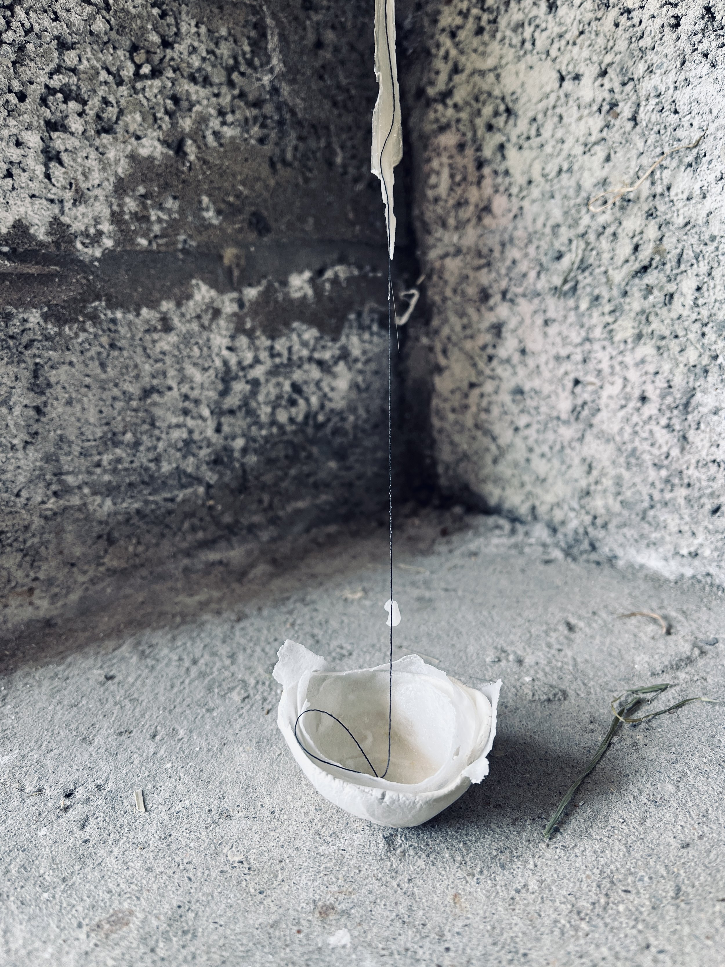 I combined this research methodology with the theory of the felt sense, as described by Peter Levine in his book, Waking the Tiger: Healing Trauma, where Levine explores trauma in relation to the felt sense. He explores traumatic symptoms not being caused by the event itself but how the symptoms stem from the frozen energy that has not been resolved or discharged and remains stuck in the nervous system. He states ‘ through sensations and the felt sense, this vast energy can gradually be decomposed and harnessed for the purpose of transforming trauma.’ (Levine, Peter A et al.1997) Pg 76. This is an interesting theory when combining this approach with arts practice. Through exploring the therapeutic benefits of sensory exploration with materials and narrative, I wonder if becoming aware of my felt sense offers another dimension and awareness to embody my arts practice and experience a sense of peace, connectedness?
