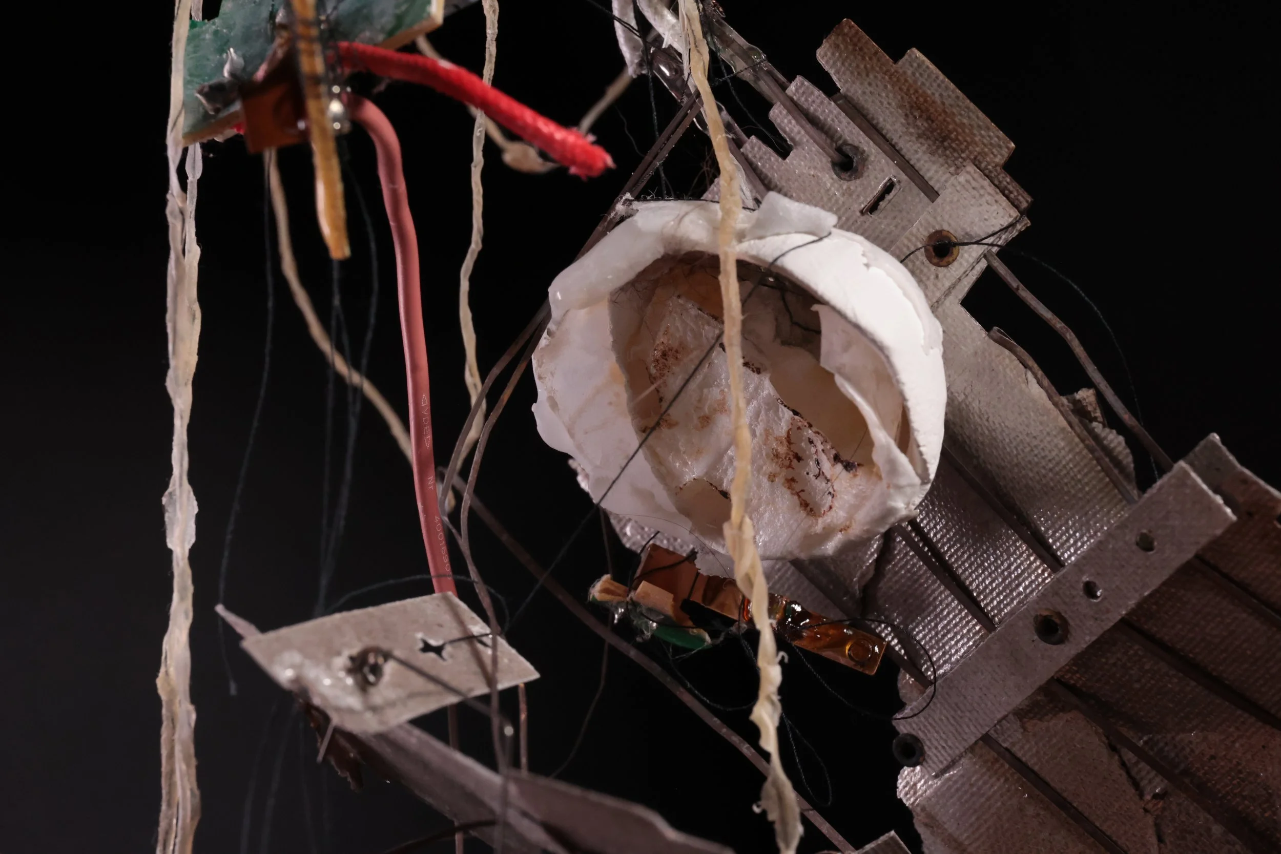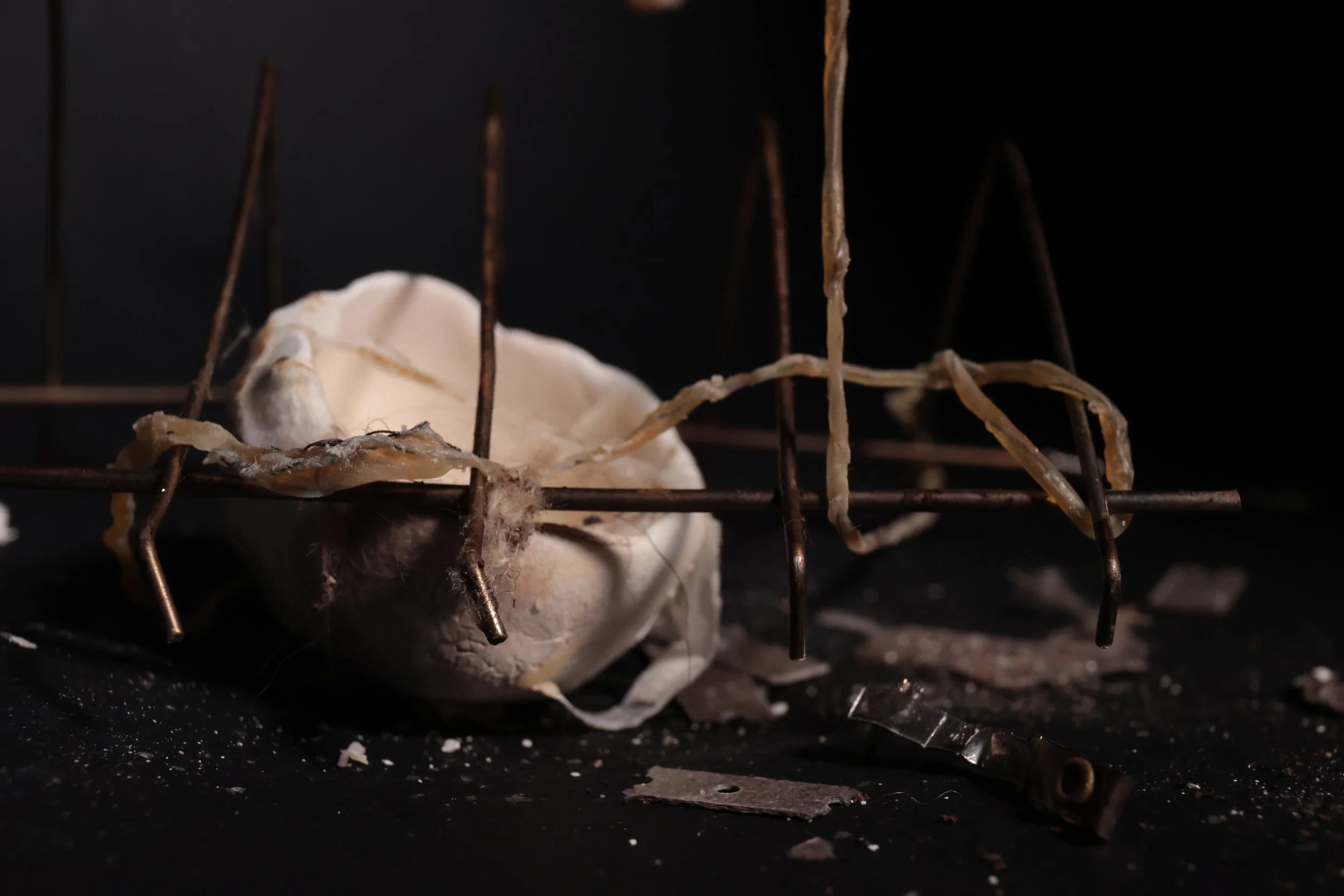 Exploring entanglement between organic forms and broken fragments of a mechanical system. These compositions are an attempt to remove context and location with the objects existing in a dark void suspended from reality.